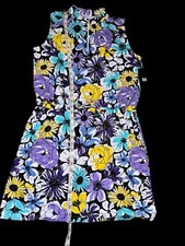 New IBKUL Sz MD Medeline Lavender Multi Floral Sleeveless Drawstring Golf Dress