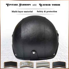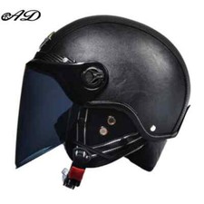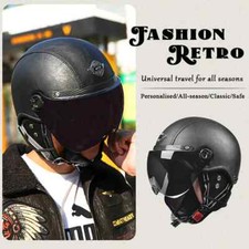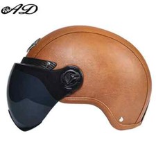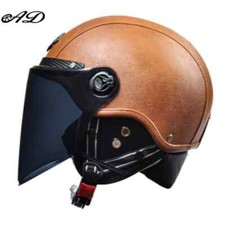 New Retro Motorcycle Helmet with Visor Leather Helmet Electric Motorbike Vintage