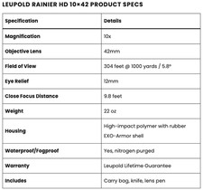 New Sealed Leupold Rainier HD 10×42 BINOCULARS w/ Case Knife Cleaning Pen