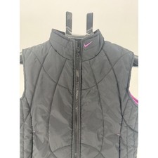 Nike Kids Quilted Puffer Vest Black Pink Logo Zip Up Sleeveless Jacket Size L