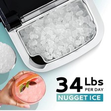 Nugget Ice Maker Countertop with Handle, Ready in 6 Mins, 34lbs/24H