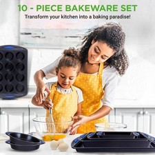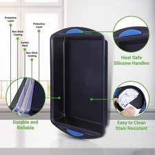NutriChef Deluxe Carbon Non-stick Steel Bakeware Set, With Blue Silicone Handles