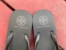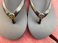 NWOB TORY BURCH MONOGRAM FLIP FLOPS (SIZE 7) thong sandals Solid Black-New