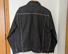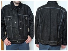 NWOT Vintage Black Denim Jacket 90s Y2K Medium Oversized Trucker Hip Hop RN97384
