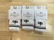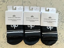 NWT ALO Yoga Unisex Half-Crew Throwback Black and White Socks M -3PK