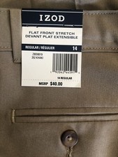 NWT Boy’s Izod Flat Front Stretch Pants Khaki Tan Size 14 Regular Uniform