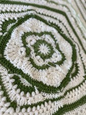 NWT Handmade King Sz Crochet Blanket 100X100 Green White Afghan Boho Farm Bed