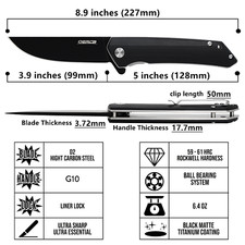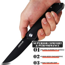 Oerla OLHB-D51 Folding Knife 3.9″ D2 Steel Blade Camping Tactical Flipper Knife