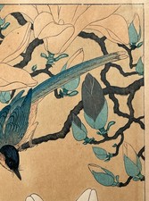 Ohara Koson “Magpie and Magnolia” Original Woodblock Print -S. Watanabe “B” seal