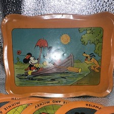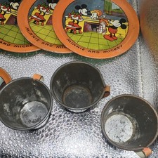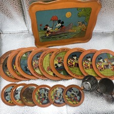 Ohio Art Vintage Mickey Mouse & Friends Tin Tea Set with Plates, Cups & Tray