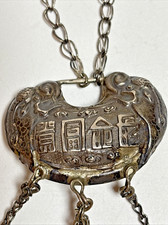 Old Chinese Silver Lock & Bells Dangle Necklace 45.62g