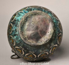 Old Dynasty Bronze Ware Gilt Silver Inscription Words Phoenix Bird Pot Jar Crock