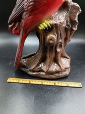 Old Solid Heavy CONCRETE RED CARDINAL HAND PAINTED GARDEN DECOR STATUE Figurine