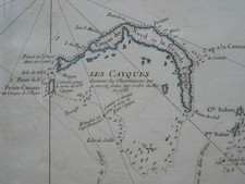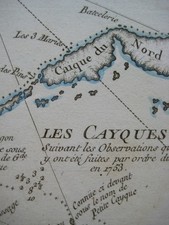 Original 1763 Bellin Nautical Map TURKS & CAICOS ISLANDS Southeastern Bahamas