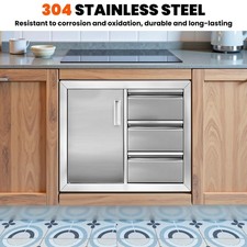 Outdoor Kitchen Drawer Combo Cabinet Built-in Triple Drawers&Door Storage