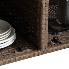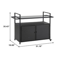Outdoor Wicker Bar Cart w/Glass Top – Rolling Grill Cart Patio BBQ Serving Table