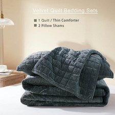 Oversized California King Velvet Quilt Set 120×120 Navy Blue Comforter Bedspread