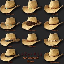 【oZtrALa】 Straw Cowboy HAT Outback Western Jacaru Mens Womens Australian Leather