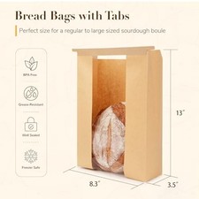 Pack Paper Bread Bags with Tabs for Homemade Sourdough, Large Bakery Bags 50