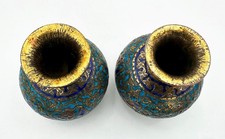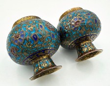 PAIR ANTIQUE KASHMIRI INDIAN SMALL VASES ENAMEL GILT METAL