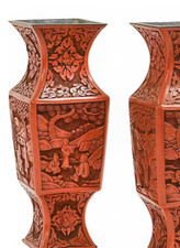 Pair of Chinese Cinnabar Lacquer Vases 19th Century