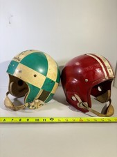 Pair of Vintage 1950s Leather Football Helmets – Spalding Titanite & Wilson