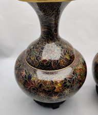 Pair of Vtg Cloisonné Vases Enamel Unusual Bulbous Shape Millefleur pattern