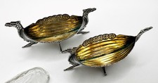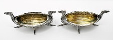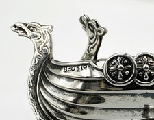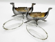 PAIR VINTAGE NORWEGIAN VIKING LONGBOAT SALT CELLARS 830 GRADE SILVER