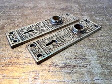 Pair Vintage Sargent Escutcheon Door Knob Plates Eastlake Gothic Brass 5″ x 2″