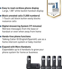 Panasonic Expandable Cordless Phone System Answering Machine 5 Handsets Black