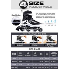 Papaison Adjustable Inline Skates XL Sz 8-10.5 Black A306S-WXL Roller Blades NIB