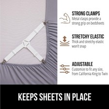 Patent Pending Bed Sheet Holders, Adjustable Elastic Fasteners with Metal Clips