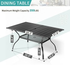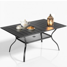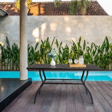 Patio Dining Table Cast Iron Outdoor Table Rectangular for 6 Person Black