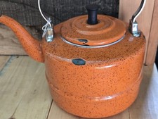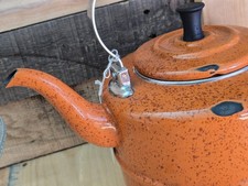 Paula Deen Orange Speckled Tea Pot Enamel Stove Top Tea Kettle