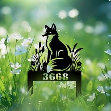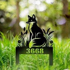 Personalized Fox Address Sign, Custom Metal House Numbers Yard Stake, Wildlife