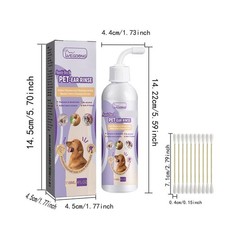Pet Ear Cleaner Solution For Dogs & Cats 118ml with Cotton 10 Swabs X1Z2
