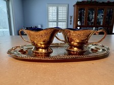 Be the first to review “Petite Cobalt Sugar & Creamer Inset In Gold-tone Repousse Holders & Tray 1.6lbs”