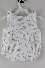Petite Plume Infant’s Twill Ruffled Romper in Easter Frolic 6/12 M White NWT