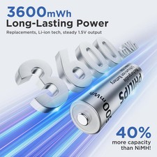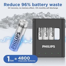 Philips 4Pcs AA Lithium Rechargeable Batteries 1.5V 3600mWh w/ Fast Charger Box