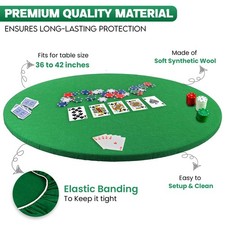 Poker Card Games Green Felt Fitted Round Cloth Cover Fits to 36″ to 42″ Table