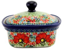 Polish Pottery Butter Dish / Container with Lid, 5.75″ L x 4″ W x 4″ H, 14 Oz.