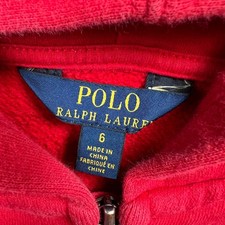 Polo Ralph Lauren Boys’ Red Full Zip Hoodie Size 6 Fleece Lined Hooded