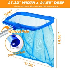 Pool Cleaning Skimmer Net, Reinforced Deep Rake, Heavy Duty, No Pole, Blue