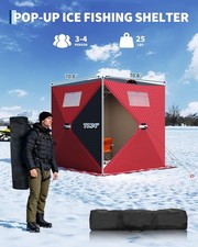 Pop-Up Ice Fishing Tent–Portable Hub Shelter,Zippered Door, Wind Ropes & Anchors