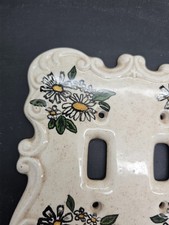 Porcelain Dual Light Switch Plate Cover Off White Hand Painted Flower Daisy
