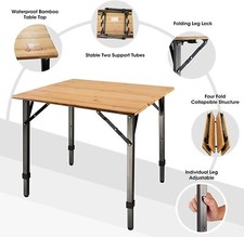 Portable Heavy Duty Adjustable Height Bamboo Folding Table Camping Table 176 lbs