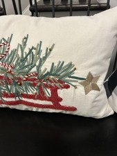 Pottery Barn Christmas Tree Sled Embroidered Lumbar Pillow