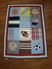 Pottery Barn Kids 3 Pcs Sports Baby Toddler Quilt & 2 Pillow Shams Vntg 2012 Set