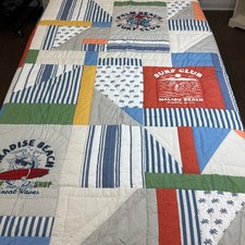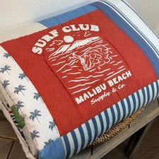 POTTERY BARN KIDS CHASE SURF QUILT, FULL/QUEEN 86″ SQ ~ *SMALL FLAW