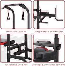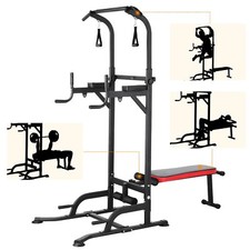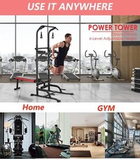 Power Tower with Bench Pull Up Bar Dip Station Gym Strength Training Adjustable